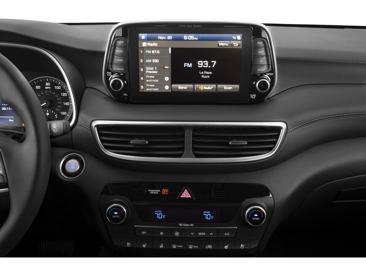 - Radio: Infinity Audio System w/Navigation -inc: 315-Watt, 8" color touchscreen, 8 speakers, Clari-Fi music restoration technology, external amplifier, Blue Link Connected Car Care System, Bluetooth hands-free phone system, iPod/USB auxiliary input jacks, Android Auto, Apple CarPlay, SirusXM radio, BlueLink connected car system and voice recognition