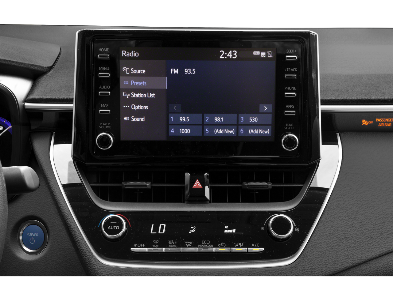 - Radio: Audio AM/FM -inc: 6 speakers, 8" touch-screen, Android Auto, Apple CarPlay and Amazon Alexa compatible, USB media port, 1 USB charge port, hands-free phone capability, music streaming via Bluetooth wireless technology and SiriusXM w/3-month All Access trial, See toyota.com/audio-multimedia for details, Connected Services - Safety Connect w/1-year trial and Wi-Fi Connect w/up to 2 GB within 3-month trial, See toyota.com/connected-services for details