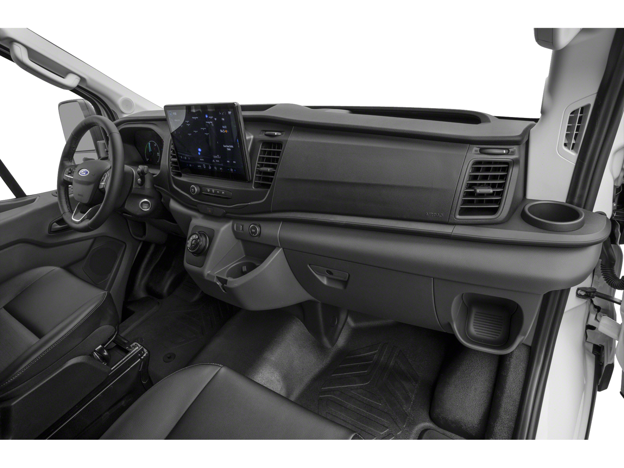 - Radio: AM/FM Stereo w/SYNC 4 -inc: 12" multi-function display, Bluetooth®, dual USB ports, embedded voice recognition, connected navigation w/3 years of service available through Ford Pro Intelligence, 4 speakers (front), Ford commercial solutions energy management and vehicle insight tools (access to the Ford charge network, public charging account setup and management, driver public charging tools, home charging reimbursement, Ford E-Telematics dashboard and connected navigation) included for commercial and business customers complimentary for 1 year